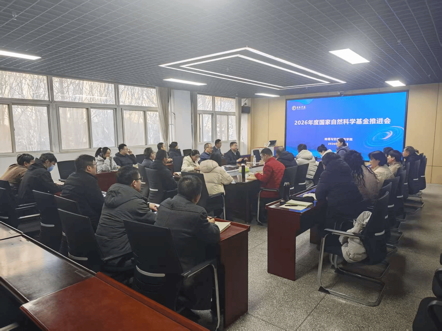 为进一步提升学院科研竞争力,明确2026年度国家自然科学基金申报工作的新形势与新要求,1月9日,地理与空间信息学院召开2026年度国家自然科学基金申报推进会,闫慧院长主持会议,全院博士参会。