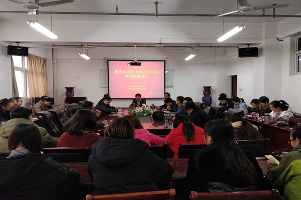 12月25日下午,校纪委书记罗凤英到我院上党课。我院全体教职工和部分学生党员代表聆听了罗书记的报告,会议由院党总支书记王中立主持。
