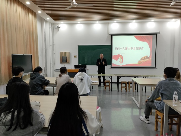 会议上,高均昭老师从深刻认识总结党的百年奋斗重大成就和历史经验的重大意义、深刻领会党百年奋斗历程与重大成就等方面对党的十九届六中全会精神进行了精准阐述、深刻解读。会议强调,要进一步增强学习领悟主动性,把学习宣传贯彻党的十九届六中全会精神作为一个重大任务,努力学懂弄通全会精神的丰富内涵和核心要求,不断增强“四个意识”、坚定“四个自信”、做到“两个维护”。此次会议让同学们更加深入地了解了中国百年的奋斗历史以及十九届六中全会精神的核心意义,也让同学们增强了历史归属感和责任感。最后,会议在同学们的掌声中落下帷幕。
