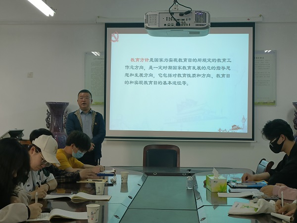 4月22日下午五点,我院在城环会议室召开以党的教育方针的历史变迁为主题的分党校培训,此次培训由党委副书记王璐主讲,第三十九期积极分子全体参加。