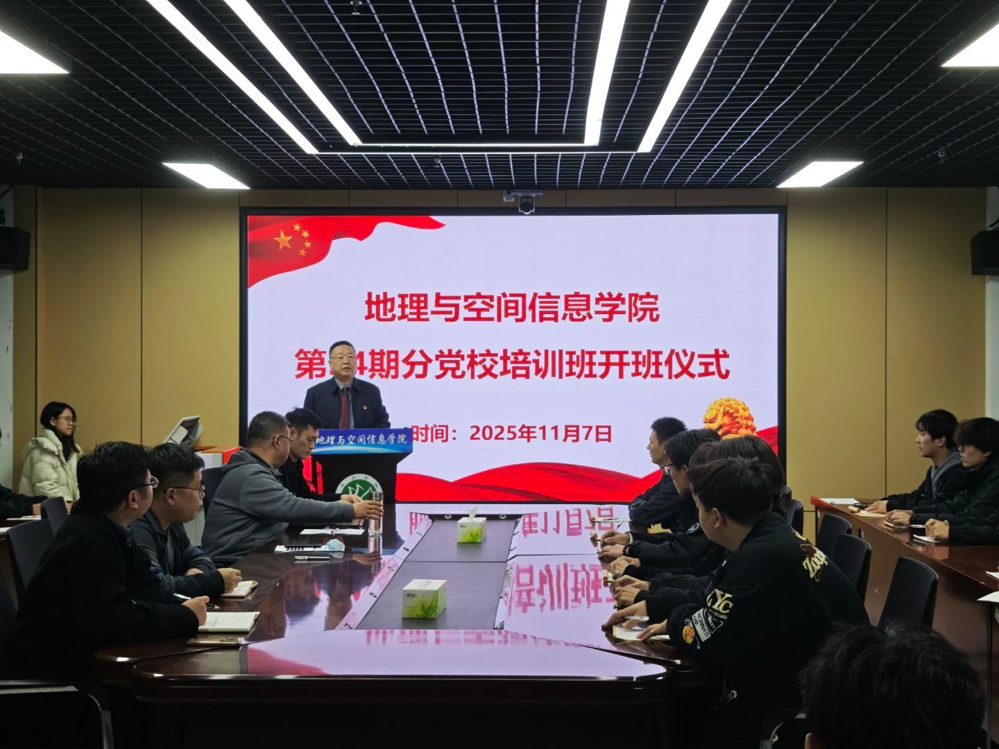 2025年11月7日下午,地理与空间信息学院第34期分党校培训班开班仪式在理综楼233会议室顺利举行。院党委书记、分党校校长樊明智,党委副书记王璐,党委专职组织员张俊、学生第一党支部书记冯璐彤及培训班全体学员参加开班仪式。开班仪式由党委副书记王璐主持。