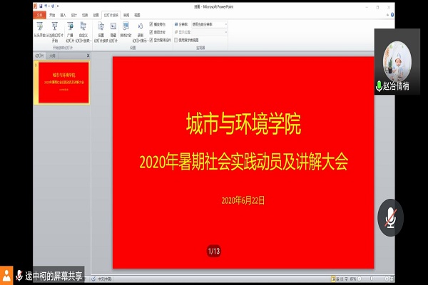 6月22日上午,我院通过线上的方式就行了2020年社会实践动员大会,各实践队队长、团支书参加了此次会议,会议由我院辅导员赵冶倩楠老师主持。