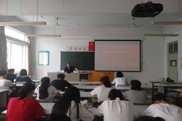 6月21日下午,我院在B3教学楼开展了党建联合团建活动。许昌学院法制办公室副主任朱国君主任为18级地理科学专业全体学生开展了主题为《漫谈中国古典哲学学习》的读书交流会。活动由辅导员赵冶倩楠老师主持。