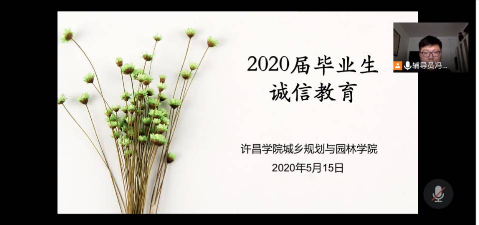 2020年5月15日上午,城乡规划与园林学院召开2020届毕业生诚信教育主题班会,全体2020届申请过助学贷款的毕业生参加,会议采取线上会议的形式进行,由学院资助专干冯璐彤老师主持。
