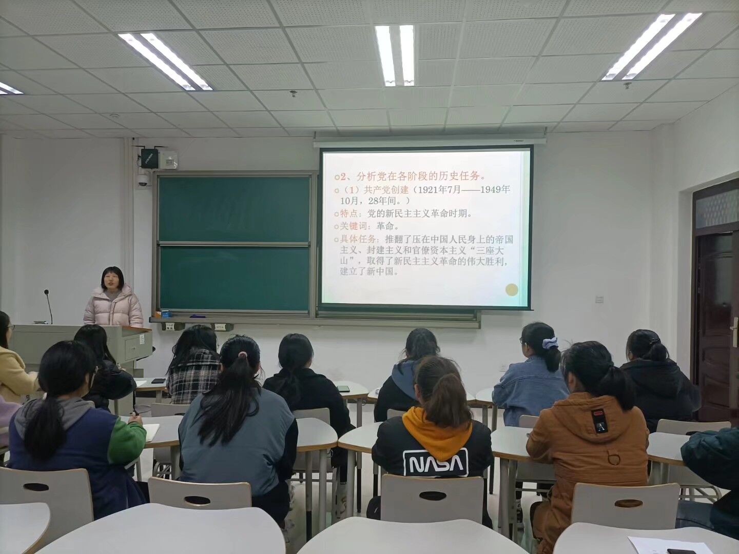 开班第一课,赵老师给同学们讲解了党史和新中国史奋斗过程。赵老师要求同学们认真考察和深刻理解新时代在党史、新中国史上的重要地位和意义,更要求同学们从宏观上进一步正确认识和把握党史、新中国史,坚定“四个自信”奋力实现“两个一百年”奋斗目标。