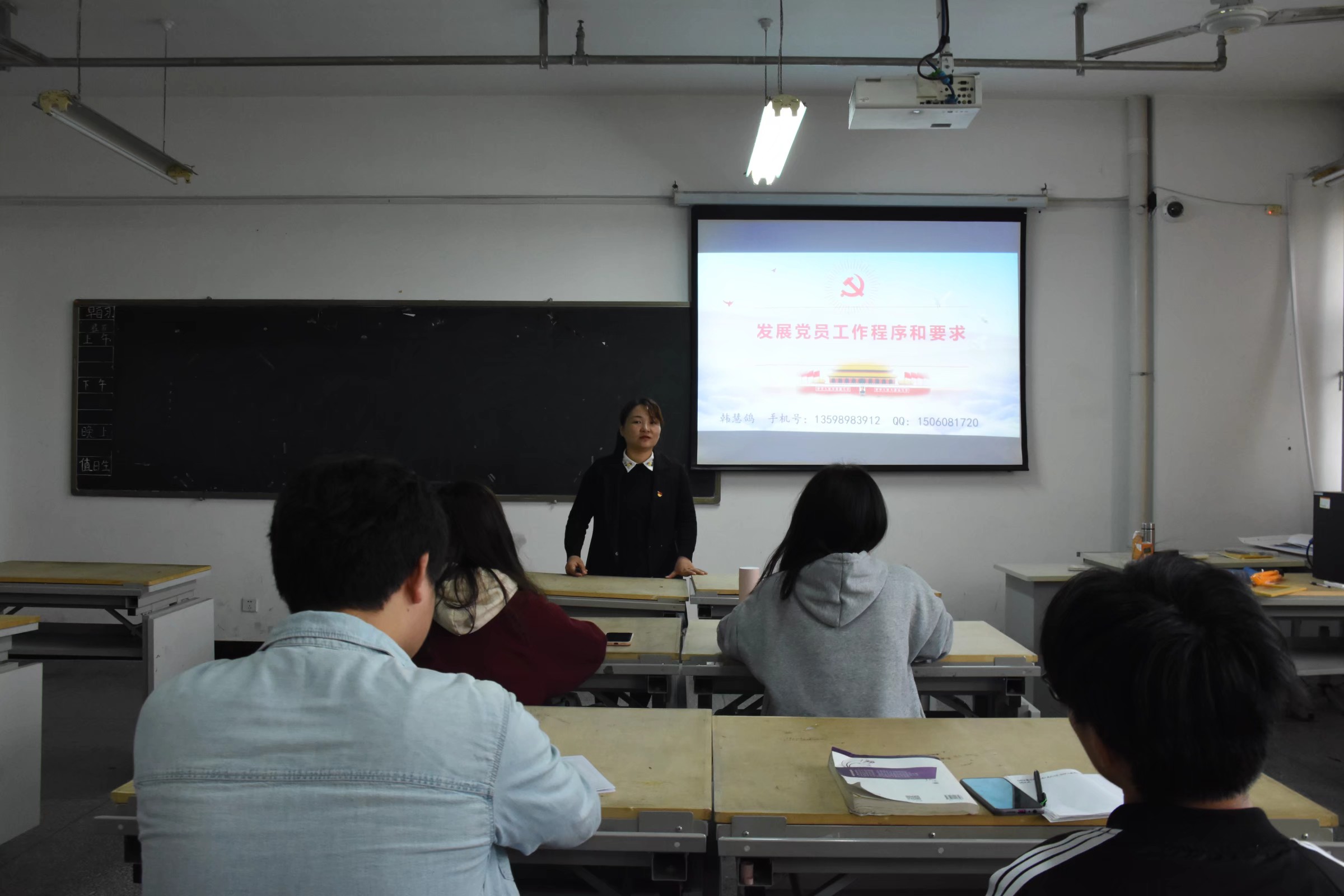 “怎样做一名合格共青团员,在成为党员需要的基本步骤”是贯穿此次团课始终的主题。课上,韩老师提到,作为一名合格的共青团员必须要了解党史、团史、做到不忘初心,勇于承担起振兴中华的使命,对党忠诚,积极工作,为共产主义奋斗终身。接着,韩老师从申请入党、入党积极分子的确定和培养、发展对象的确定与考察、预备党员的教育、考察、转正等方面详细为团课成员讲解发展党员工作程序和要求。韩慧鸽老师生动的语言和轻松的课堂气氛充分充分调动了大家的积极性,让现场的同学们深刻意识到成为党员道路上应有的责任和担当,勇于承担光荣使命和重大责任。