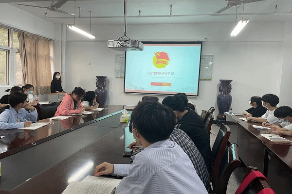 2022年4月9日,我院在理综楼233会议室进行团课培训,此次团课培训由21级辅导员张鑫老师主持,对第三十九期的积极分子进行共青团的历史及启示讲解。
