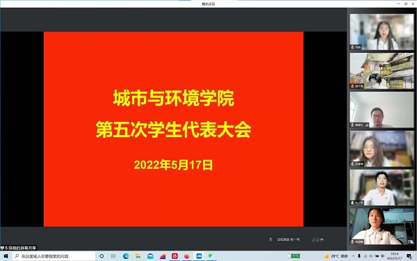 5月17日下午七点,我院在腾讯会议上召开线上城市与环境学院第五次学生代表大会。院团委副书记赵冶倩楠,院学生会执行主席张龙琦,院学生会轮值主席杜一平、韩果忠等人出席此次大会。