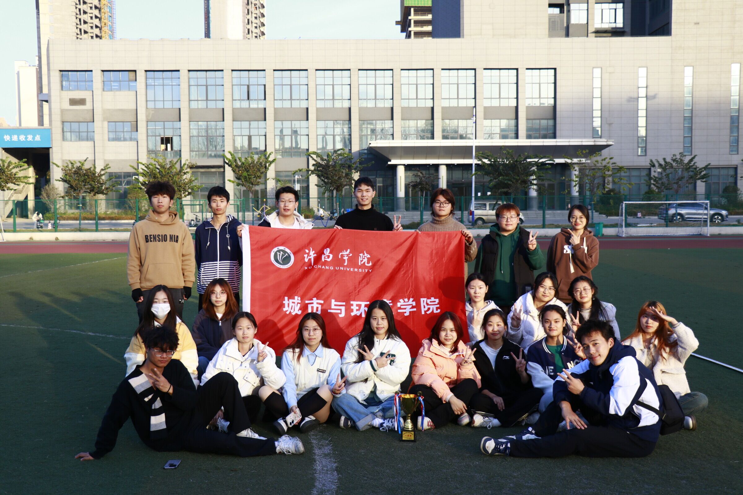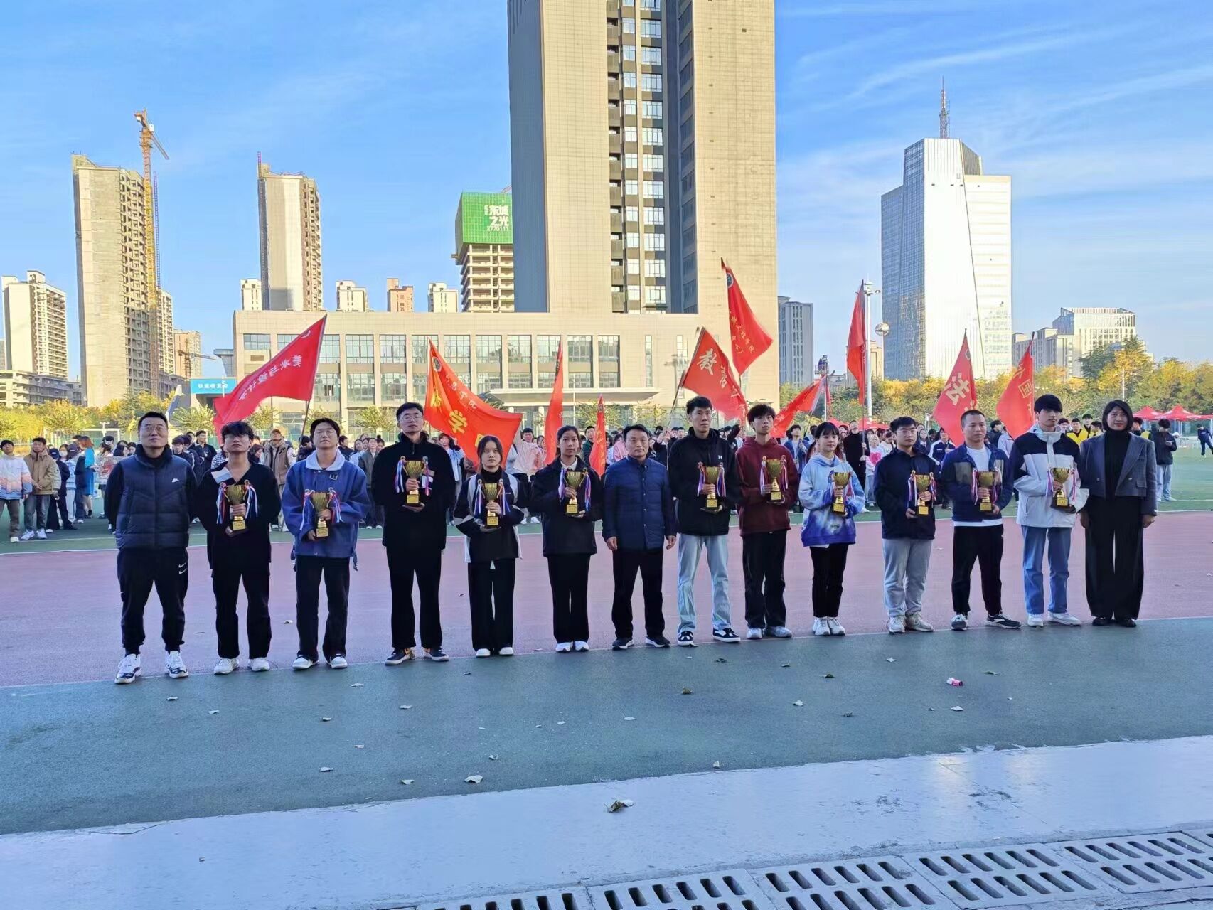 2023年11月18日,我校于羽飞田径场举办了素质拓展运动会。城市与环境学院学生代表积极参与,并在此次运动会中荣获一等奖。