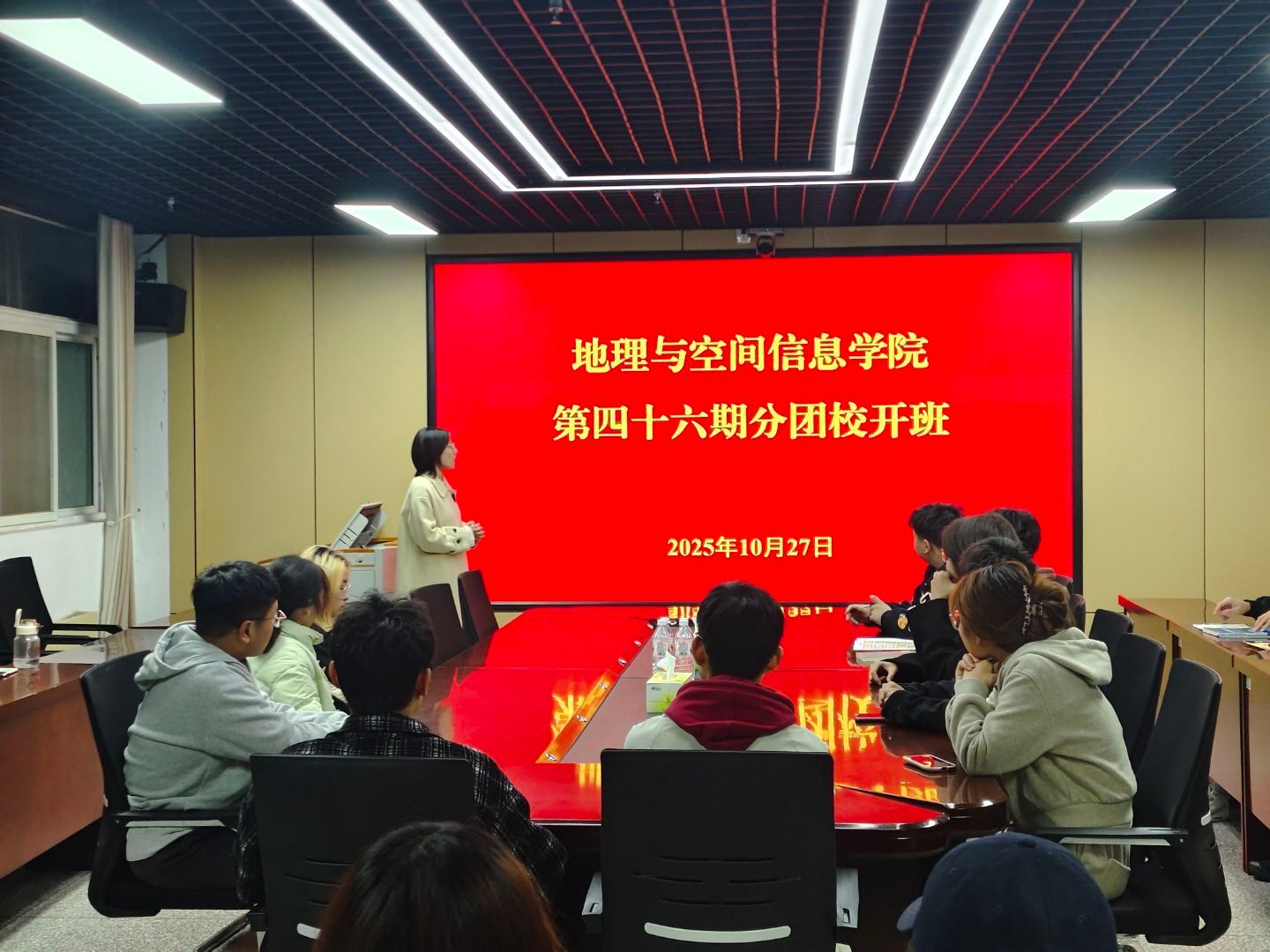 2025年10月27日至10月31日,地理与空间信息学院团委在理综楼233会议室开展第四十六期分团校培训。本期团课由赵冶倩楠、张俊、冯璐彤、张鑫、杨晓丽老师主讲,第四十六期积极分子全体参加。