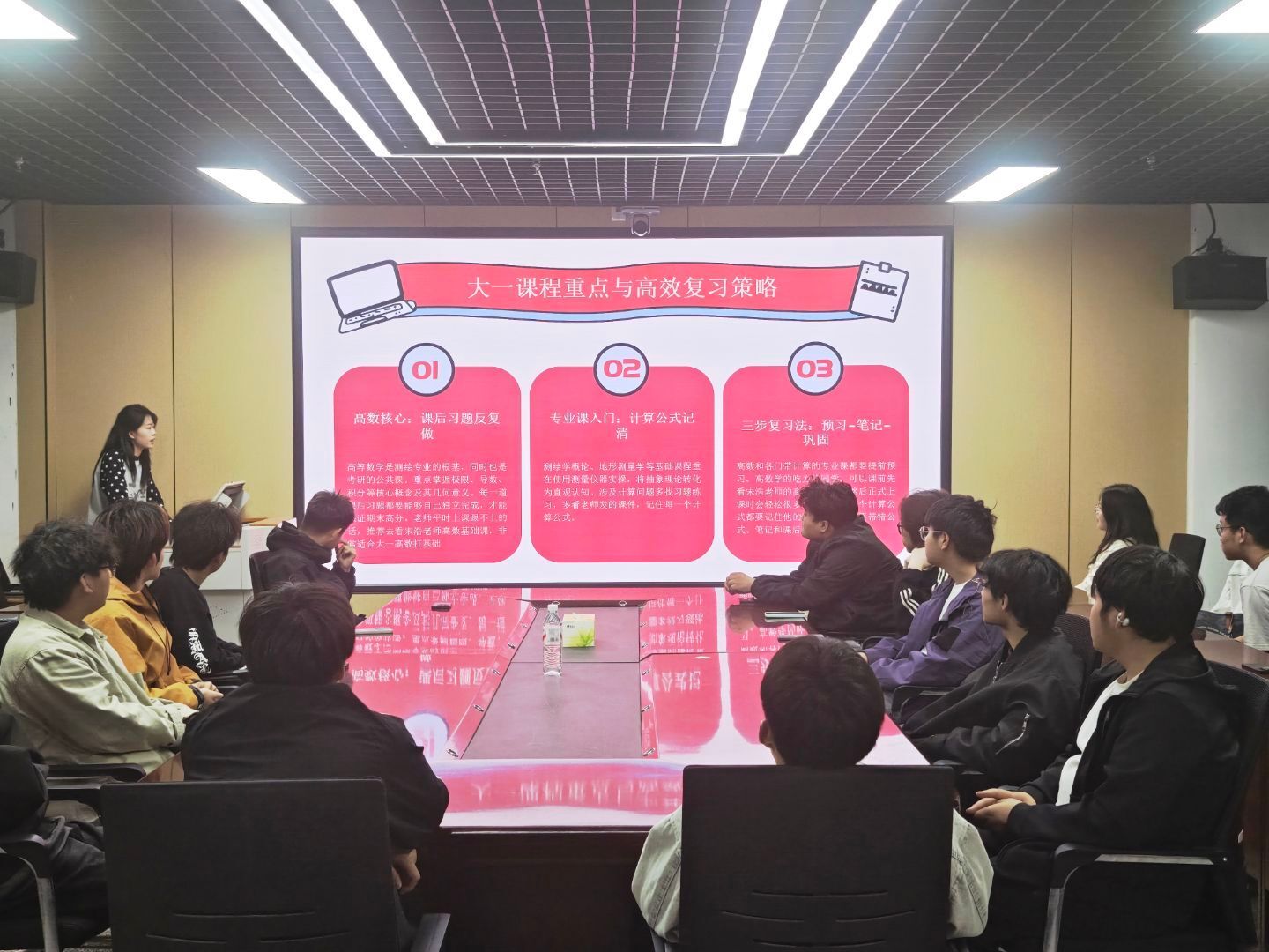 第二位学姐则聚焦大学时间管理与全周期学业规划,分享了高效分配学习、生活、课余时间的实用方法,教导同学们如何平衡专业课程学习、课外实践、自我提升等各项事务,摒弃低效的学习状态。同时,鼓励同学们重视专业实操能力培养,扎实掌握测绘专业核心技能,为后续考研、就业筑牢根基。