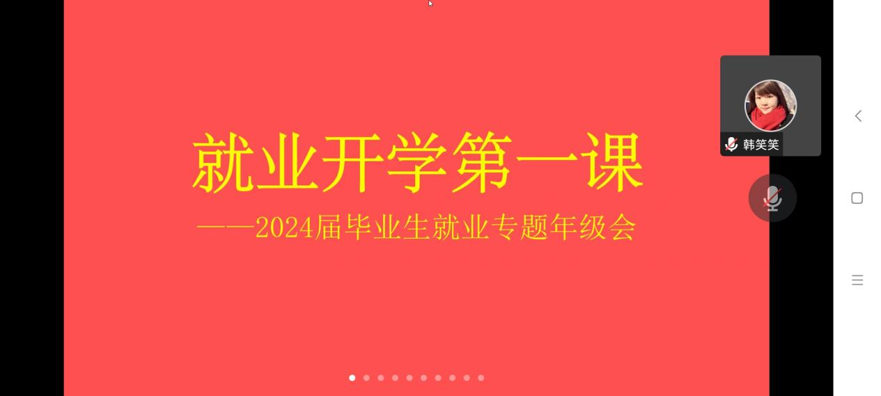 为解答毕业生的就业困惑,进一步帮助同学们树立正确的就业观和择业观,提高就业意识、明确就业方向、优化简历信息、增加面试技巧,使广大同学进一步提升应聘成功率。我院于2023年9月14日,开展线上“就业教育开学第一课”系列主题宣讲会,此次主题宣讲会由学院就业专干老师韩慧鸽主持召开,全体20级毕业生参加。