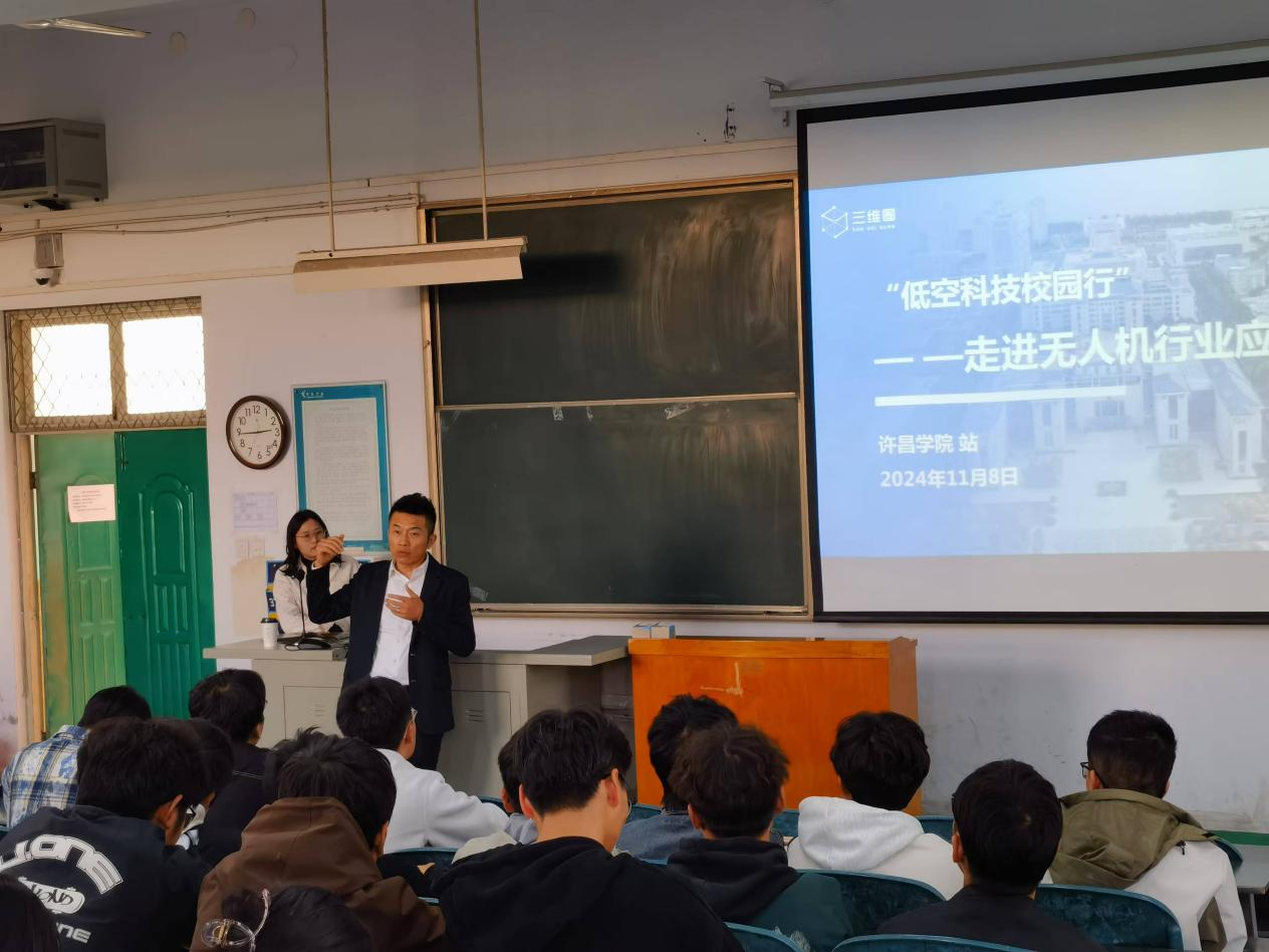 招聘会上三维圈集团的罗总为大家进行低空经济和无人机行业应用的宣讲,同时介绍了该集团公司的经营业务、发展规划等,之后与同学进行了深度交流。