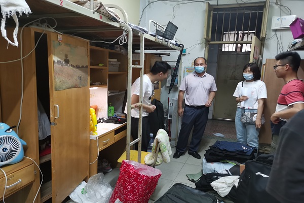 6月18日晚,我院170名第二批返校学生全部完成返校工作,为进一步落实复学工作,抓好疫情防控的各项措施,院党委书记高均昭,院长袁胜元,辅导员朱晓丹,赵冶倩楠老师到宿舍慰问返校学生。