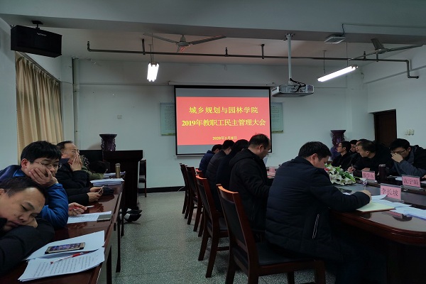1月8日下午,我院在会议室召开城乡规划与园林学院2019年教职工民主管理大会,院领导班子成员,全体教职工参加会议,会议由党总支副书记侯刚主持。