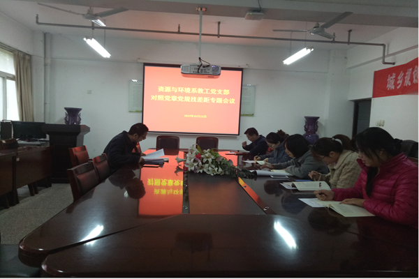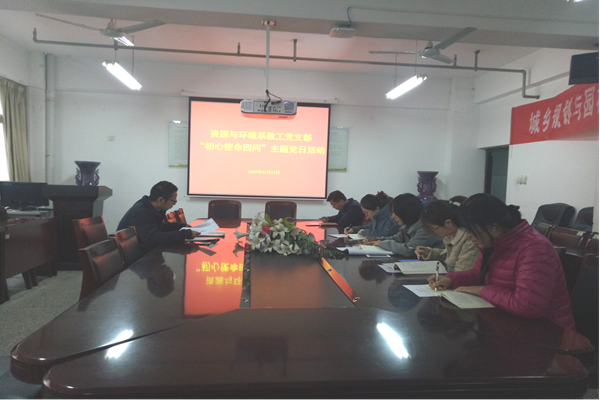 资源与环境系教工党支部于11月21日在城规院会议室开展了以“初心使命四问”为主题的党日活动暨对照党章党规找差距专题会议。由党支部书记徐永新主持,全体教工党员参加。