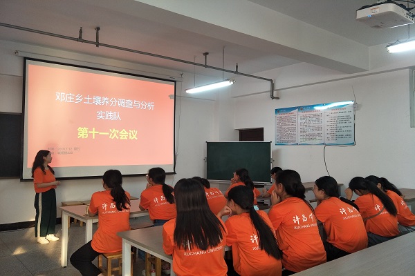 7月12日上午,许昌学院城乡规划与园林学院许昌周边村庄耕作土壤养分调查及分析暑期社会实践队队员照常准时8点到达了理综楼330会议室召开了队内第十一次会议。实践队队长宋依萍,团支书刘靖,以及实践队全体成员参加了此次会议,本次会议旨在总结实验规律,反思不足之处以及互相探讨,吸取经验。