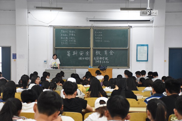 6月29日下午,我院在A合4教学楼召开了暑期安全教育大会,出席本次会议的有朱晓丹和赵冶倩楠两位老师以及18级全体学生和17、16级部分学生。