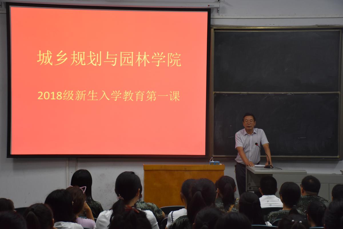 为帮助18级新生尽快适应大学生活,融入新的生活环境。城乡规划与园林学院于9月10日在A合十七和A合十八教室开展入学教育。参加此次活动的有党总支书记王中立、党总支副书记侯刚、团总支书记赵学琴,辅导员朱晓丹老师以及全体18级新生。