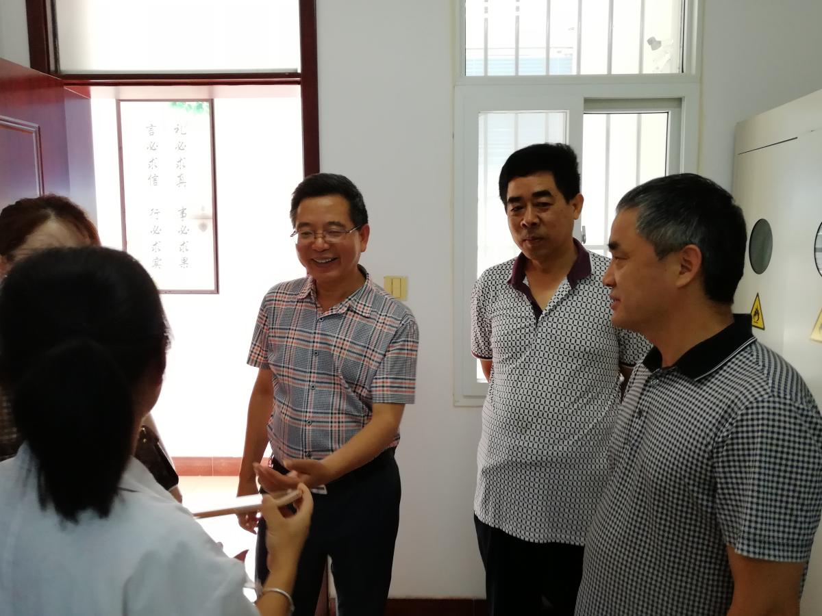 许昌学院城乡规划与园林学院党总支书记王中立和韩冰雪老师到达许昌市环境监测中心后,由环境监测中心负责人郭长虹站长和于学民主任带领到会议室。在会议上,王书记鼓励队员们要好好跟着专业人员做实验,这是一个不可多得的机会,要好好珍惜。随后,郭站长和于主任带领着王书记和韩老师来到了实验室,看望正在做实验的同学。他强调队员们在实验时要注意安全,保护好自己,并与实验室的工作人员了解到了队员们日常的实践情况,充分肯定了队员们认真负责的态度。实践队队员们听了王书记的话后,非常受鼓舞,更是抱着聚精会神的态度工作起来。
