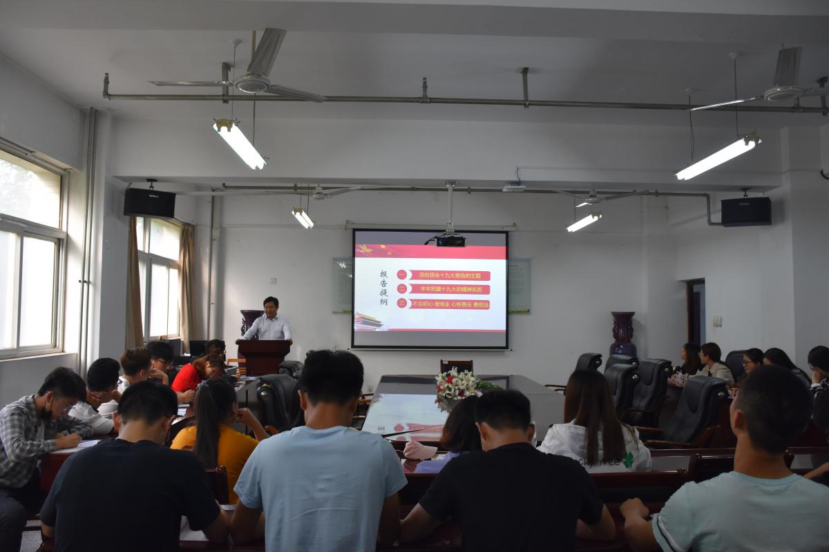 吴院长首先和大家一起深刻领会十九大报告的主题,领悟到要牢牢把握新时代中国特色社会主义这条主线的深层含义,深刻理解十八大以来,党和国家发生的历史性巨变。接着,吴院长强调要牢牢把握十九大的精神实质,明确新时期新中国的八个中国特色社会主义建设的“新思想”。最后教导大家要不忘初心跟党走,心怀责任勇担当,要牢记使命,强化党员意识,坚定政治信仰,作为青年人要发挥模范带头作用,做合格党员。