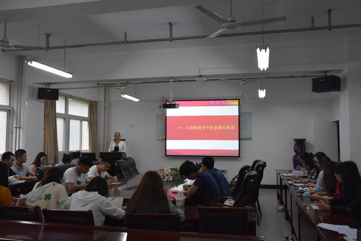 5月20日下午,我院第十九期党校培训第三课时于理科综合楼二楼会议室召开。本次党课由我院团支总书记赵学琴老师主持,我院所有的人入党积极分子参加。