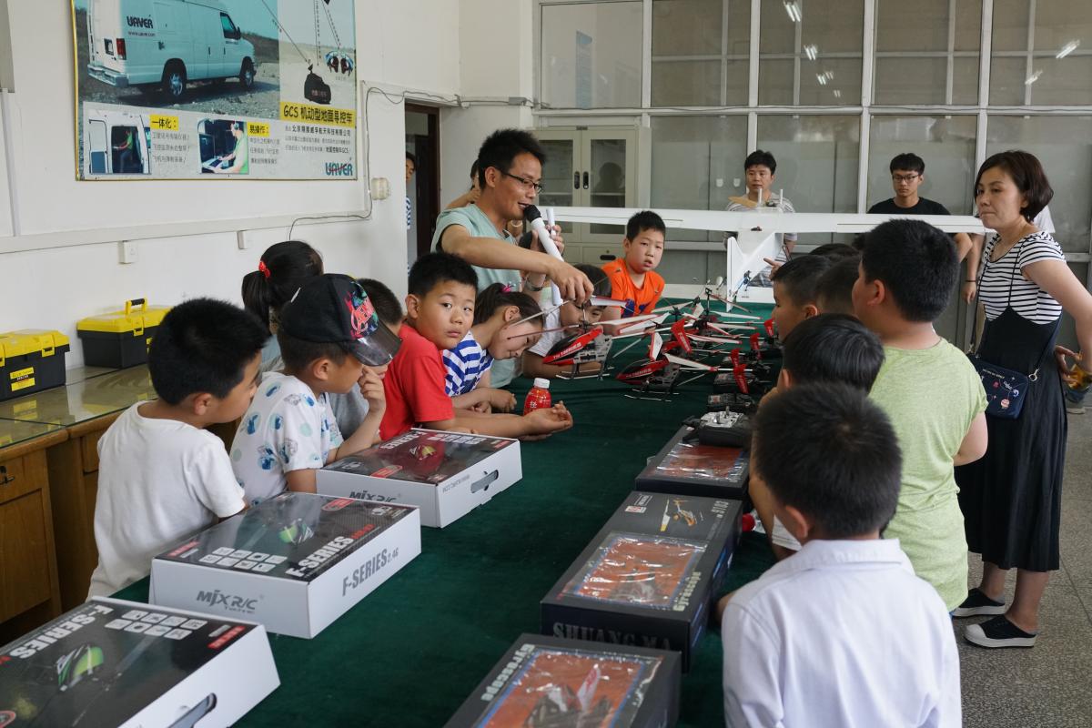之后小学生在工作人员的带领下来到无人机展厅,由耿利川博士向孩子们讲解无人机基本类型、结构。耿老师利用现有的固定翼、旋翼、直升机对无人机的类型,各部件,无人机的方向辨别等等进行讲解。这一过程中,孩子们不仅知道无人机的零部件构成,还了解无人机的简单飞行原理,收获颇多。