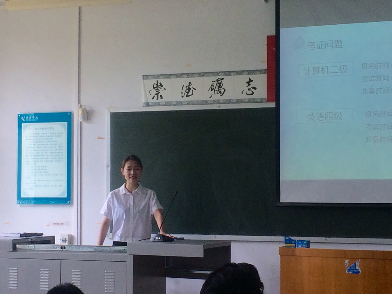王晓旭学姐首先向大家介绍的是关于入党的相关事宜,鼓励大家积极参与入党积极分子的选拔,心向党心向党。其次,王晓旭学姐对于专业学习、教师资格证、计算机二级和英语四六级等问题都有侧重的给大家做了介绍。最后向大家介绍了一些学习方法,从用人单位的角度来给大家提了一些学习侧重点,从四年的学习经验中也总结了许多大家在学习生活中都应该注意的问题并对大家的未来做出了美好的展望。