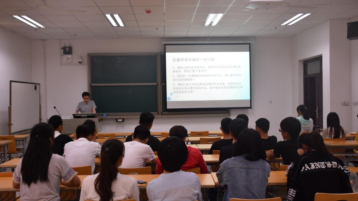 首先刘嘉珲学长向大家简述了一下测绘专业的就业状况和方向,接着学长就根据学弟、学妹们提出的不同问题做出了详细的解答。在测绘工程专业考研率低,但研究生的就业条件比本科生要好,那我们还要不要考研?等一些问题上也都向大家提出了自己独特的见解和相关考研的经验。除此之外学长也为17级的同学们提供了一些考研成功的学长、学姐们的联系方式。