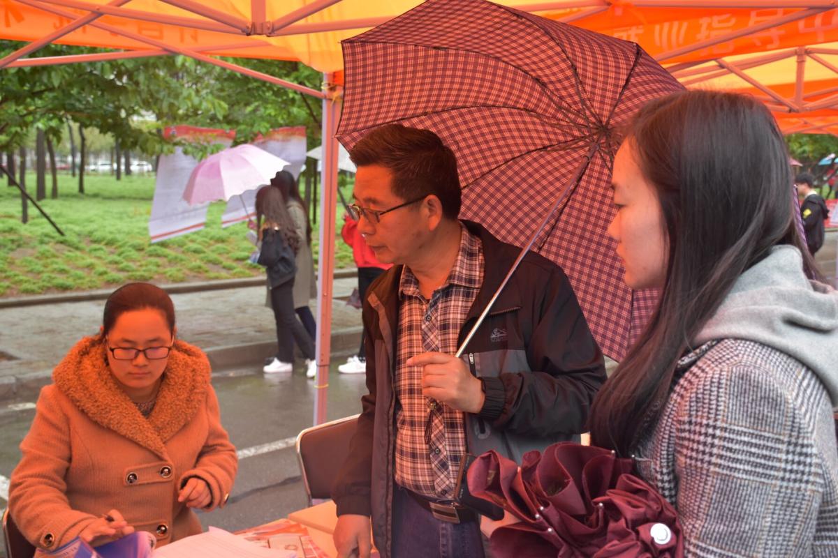 为实现我院应届毕业生的顺利就业,2018年4月13日下午2点半,城乡规划与园林学院学生积极参加我校于樱花大道举行的春季招聘会。我院党总支书记王中立、辅导员袁菁唯冒雨早早地来到了现场,指导学生应聘并向用人单位推荐我院的应届毕业生。我院14级毕业生积极参与。