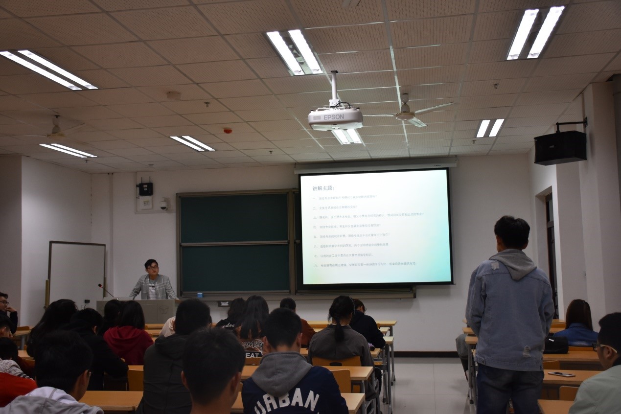 在交流会之前学长已经提前收集了同学们的问题,针对这些问题,在会上他都一一做出详细的解答。郑秀朋学长指出今后工作的方向主要有两种,女生一般为内业,男生则更多从事外业,并给同学们提出了测绘专业的学习方法和侧重方向。讲解结束以后,同学们向学长现场提问了一些细节问题,郑秀朋学长也都结合自身经验给大家分享了自己的看法。