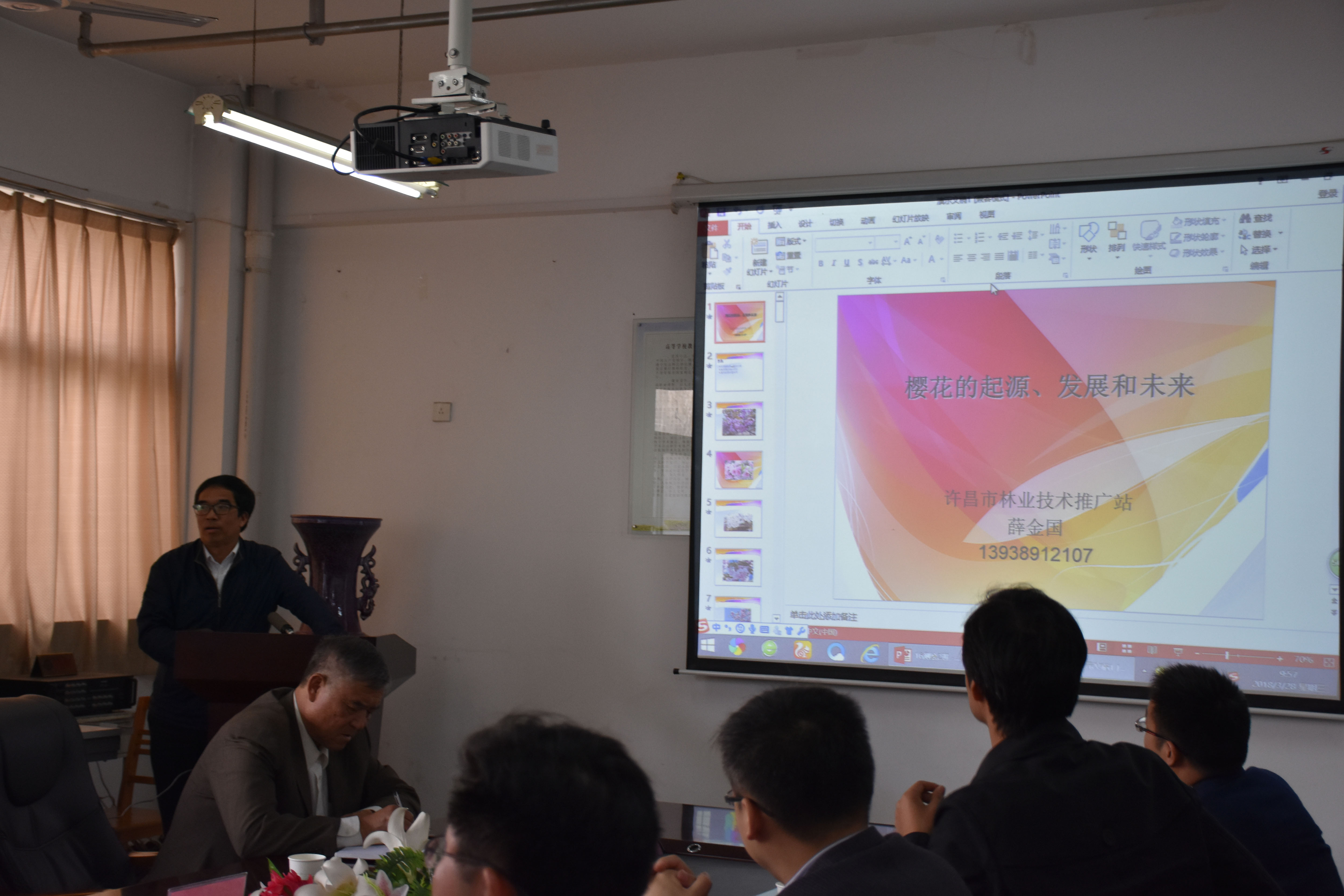 论坛期间,吴国玺教授作了《樱花文化与产业发展研究》专题报告,针对樱花文化发展的脉络、樱花产业发展现状分析、樱花产业发展的前景、樱花产业发展的对策等方面进行了介绍;薛金国教授作了《樱花的起源、发展和未来》的专题报告,从源远流长—根在中国、发展兴盛在日本、重新振兴看中国三个方面进行了分析;我院余显显博士作了《樱花的生物特性与品种资源》的专题报告,从樱花的简介、形态特征、地理分布、文化精神四个方面进行分析;我院董东平教授作了《红叶树种黄栌的生态学特性及应用》的专题报告,从许昌市园林建设现状及植物的栽培研究进行了分析。