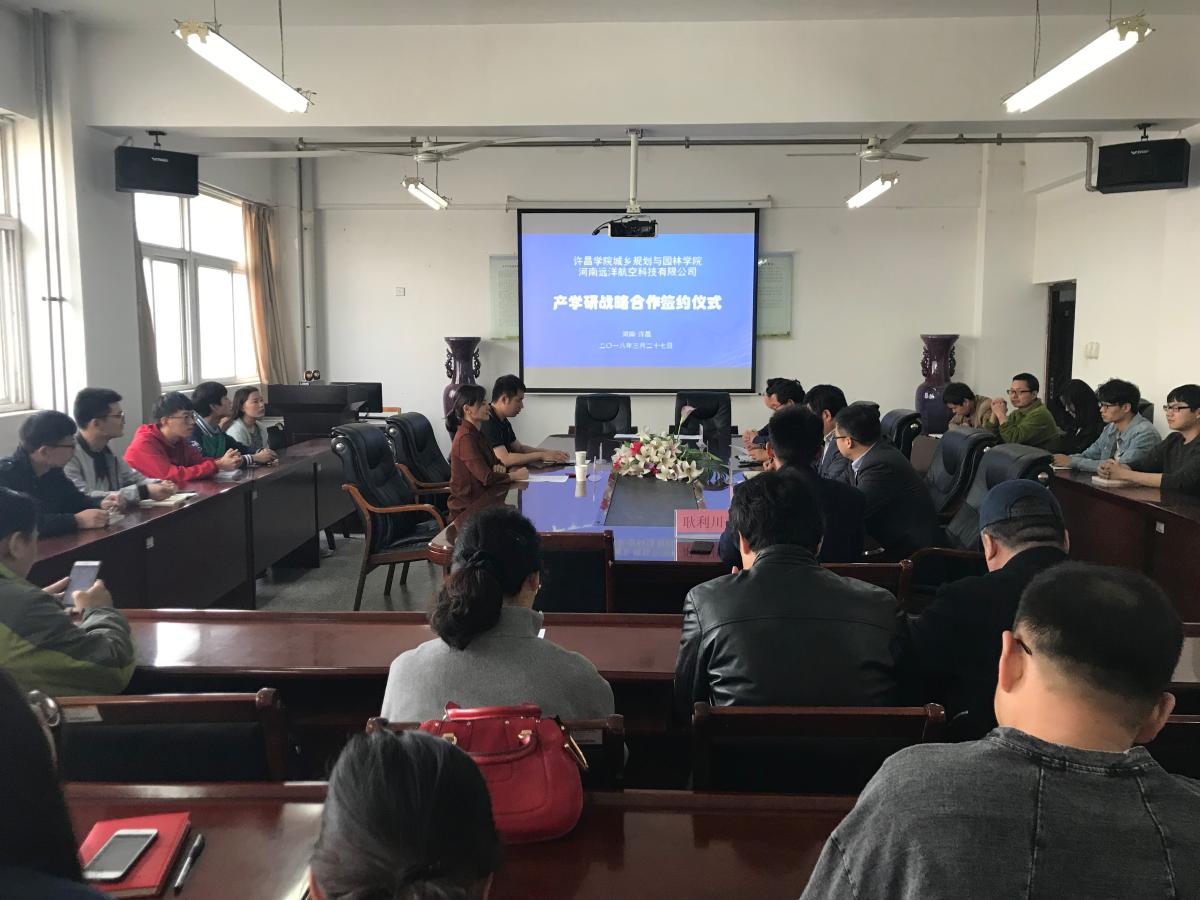 首先,吴院长对河南远洋航空科技有限公司对我院的支持表示感谢,并就我院专业特别是无人机方向的发展,主动融入地方发展、积极探索应用技术大学的理念作了介绍。他希望通过签约进一步提升我院测绘工程专业无人机遥感方向人才培养质量,创新人才培养模式,完善无人机人才培养体系,造就创新创业应用型人才,使我院无人机遥感人才培养适应无人机行业规范要求。随后,河南远洋航空科技有限公司总经理王帅简单地介绍了本公司的发展历史及优势特色,并表示通过签约产学研合作,实现与地方高校的深度合作。