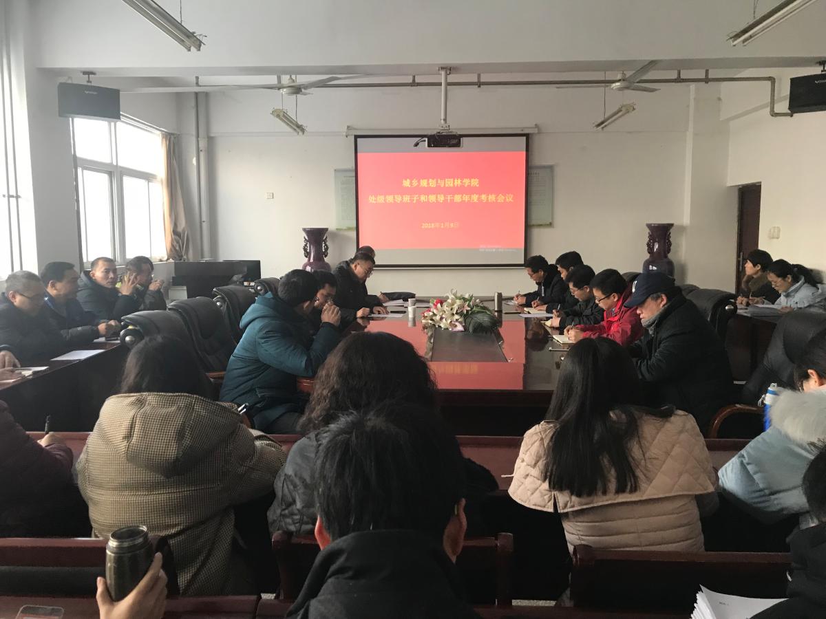 1月9日上午,我院处级领导班子和领导干部年度考核会议在城规楼会议室举行。参加会议的有许昌学院党委党校副校长李万仓、党群机关党总支秘书张付民、城乡规划与园林学院党总支书记王中立、院长吴国玺、党总支副书记侯刚、副院长闫慧,城规院全体教职工。会议由王中立书记主持。