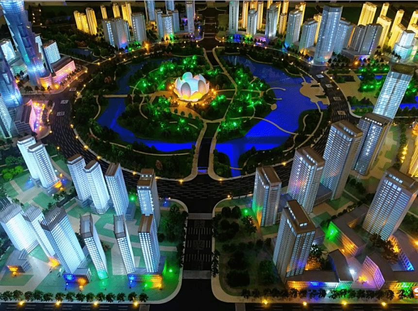 许昌市的城市总体规划为一轴连双城、一轴四节点的总体布局,其中四节点指智慧之源、科技之星、幸福之门、未来之光。由北至南看,总体布局为一把钥匙,寓意着人们依靠努力打开幸福之门,追寻未来之光。