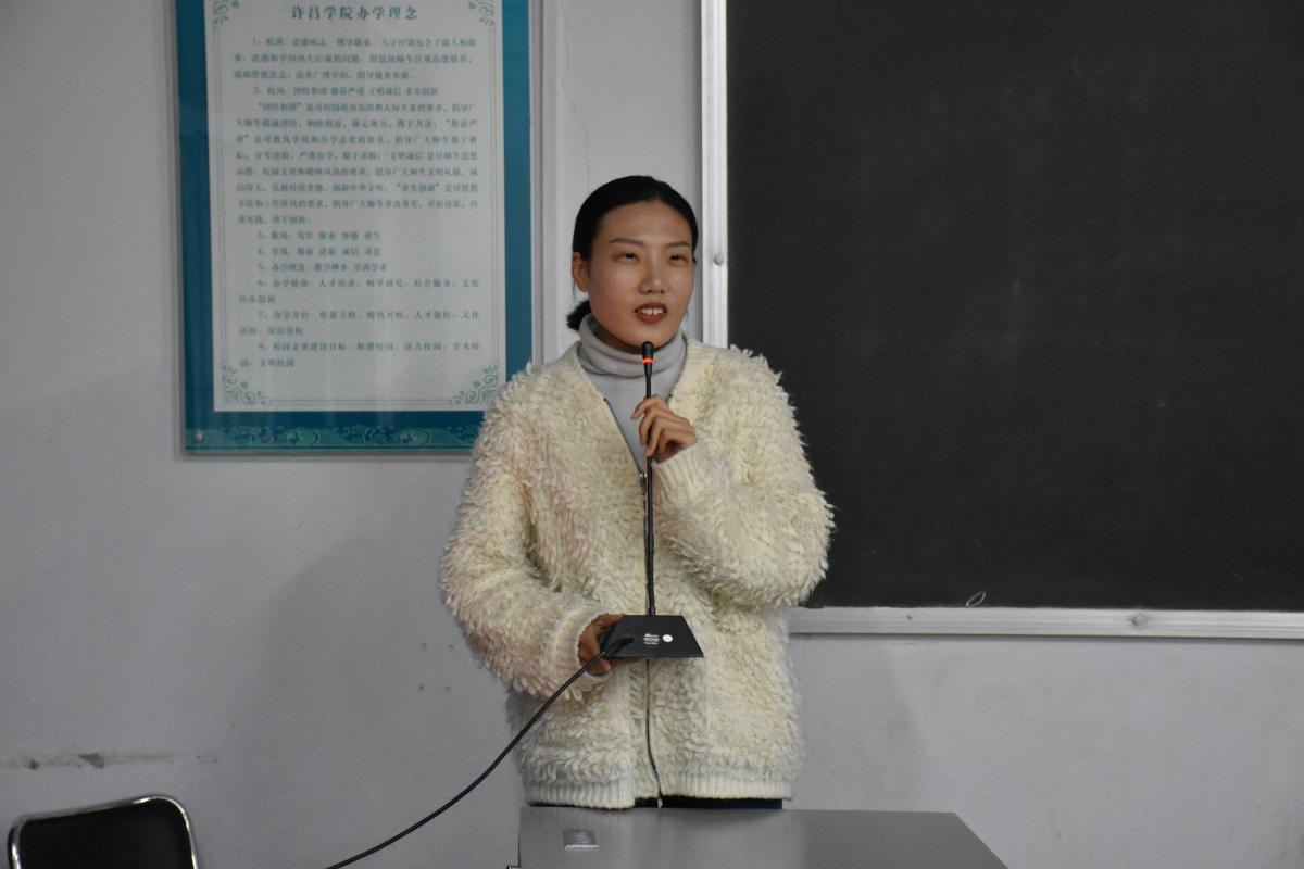 比赛的最后,辅导员赵治倩楠老师和副主席李群英做了总结讲话。希望同学们在大学里做好自己的职业规划,给自己一个清晰的目标,让自己更能有计划的去完成。