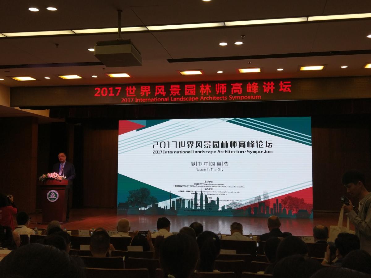 2017年9月23-25日, 由中国风景园林学会教育工作委员会、北京林业大学主办的2017世界风景园林师高峰讲坛在北京林业大学学研中心召开。我院教师蔡林林、毕翼飞,以及研究生袁冬颜、吉梦洁、邓亚平参会。