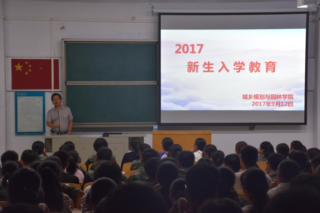 为帮助17级新生尽快适应大学生活,城乡规划与园林学院于9月12日在A合五教室开展入学教育。参加此次活动的有党总支书记王中立、城乡规划与园林学院院长吴国玺、党总支副书记侯刚、团总支书记赵学琴,辅导员袁菁唯和赵冶倩楠老师以及全体17级新生。