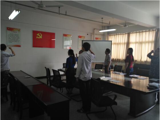 此次会议的议题分为两部分,第一部分是“重温入党誓词”,在鲜红的党旗下,各位党员高举右手庄严宣誓。通过重温入党誓词,使全体党员深深感受到作为共产党员的责任、使命、荣耀,纷纷表示要在今后的工作中时刻以共产党员的标准严格要求自己,保持党员先进性,坚定理想信念,牢记职责使命,以更加饱满的精神、更加优异的成绩,践行对党的庄严承诺。