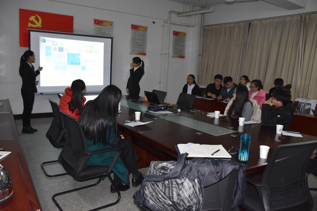 12月9日下午四点,2016年度团总支部门答辩在党员活动会议室隆重举行,本次答辩由团总支书记赵学琴、15级辅导员老师袁菁唯、16级辅导员老师杨俊鹏以及主席团成员担任评委。另有全体团总支学生干部参加了本次活动。