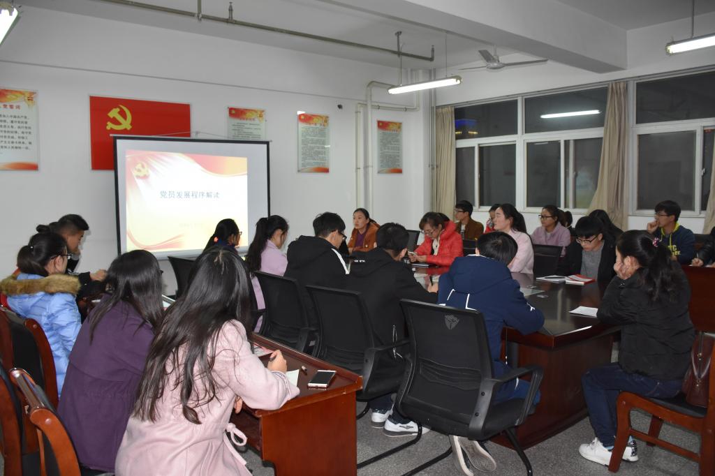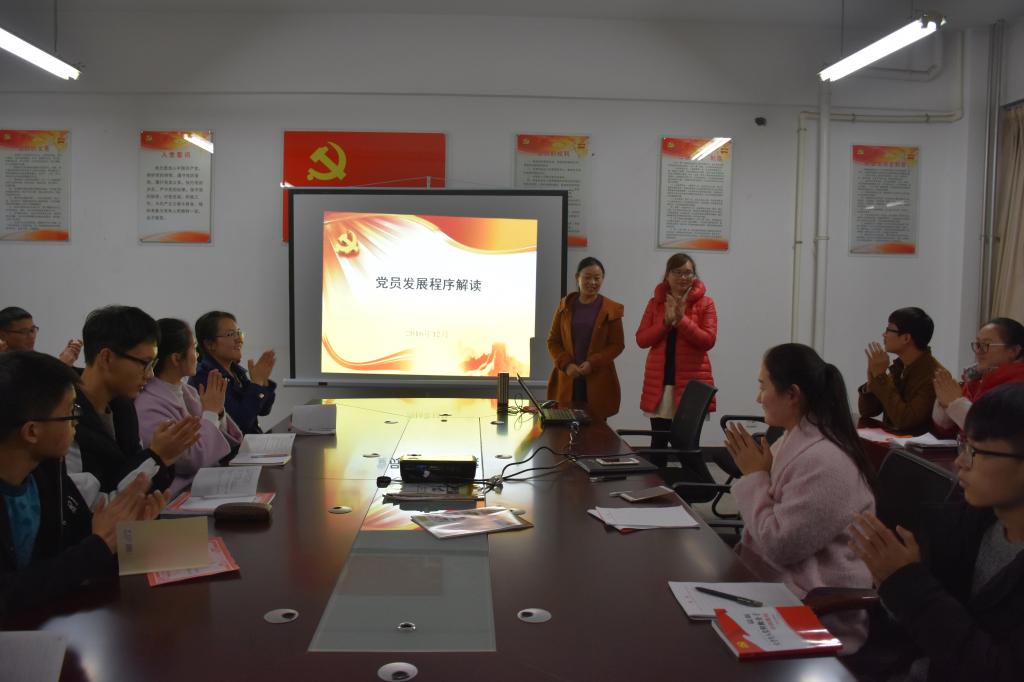 在本次分党校培训中,赵红玲老师以“党员发展程序及解读”为主题,从发展党员具体程序、党员文本材料书写规范要求、党员发展进程中的常见问题及解决方法、党组织关系转接等方法详细解读了成为一名合格的中国共产党员的具体步骤。赵老师提出各位学员要珍惜此次学习机会,用新认识,新要求武装自己。不仅要明确入党基本条件,树立正确的入党观念,而且要加强政治思想理论学习,严格遵守党的规章制度,加强对党的认识和理解,以实际行动争取早日入党。赵老师殷切希望各位学员能早日成为一名合格的中共党员。