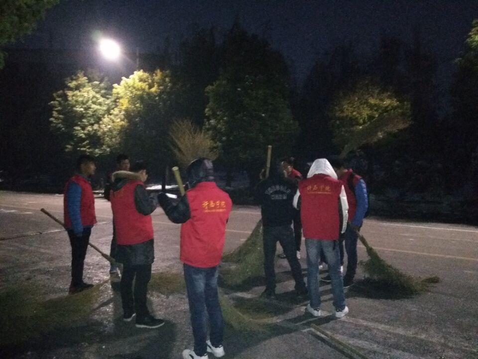 早上8点,正是上课时间,天气严寒,大家走出宿舍楼时都包着厚厚的围巾,不断地往手里哈着气。然而在这之前,志愿者早已顶着刺骨的寒风,帮助校内清洁工开始打扫结着薄冰的路面。活动负责人姜博说道,室外温度很低,有一些同学因为没有带保暖手套,手冻得都拿不紧扫把,但他们却依然坚持着完成清洁工作。