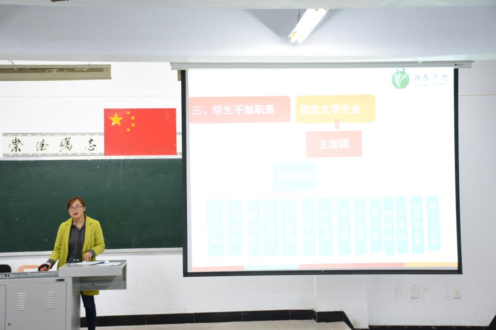 演讲伊始,赵学琴老师以“1个组织,第2课堂,3项能力,4点展望,5个建议”作为联系全篇的枝干,分点概括,为同学们做了全面细致的讲解。讲话中详细介绍了我院团总支学生会的工作及其职能,并就我院党支部概况做了介绍,鼓励同学们踊跃参加学生会工作并且积极入党。此外,赵老师向同学们介绍了我院即将展开的几大品牌活动,如思想列车活动、 “棋王争霸赛”、道德讲堂等,并鼓励同学们积极参加。随着讲话的进行,赵老师提到在校期间同学们要充分锻炼“思想品质·思维创新·综合能力”此3项能力,培养团队观念。最后,对将后我院创新创业建设·思想政治建设·班风学风建设·科技创新建设等4项工作做出展望,并建议同学们在日常学习生活中积极主动,拥有强烈危机感,明确自己的目标做出全面的计划,集中精力学最有用知识技能,学习人际交往和沟通能力。