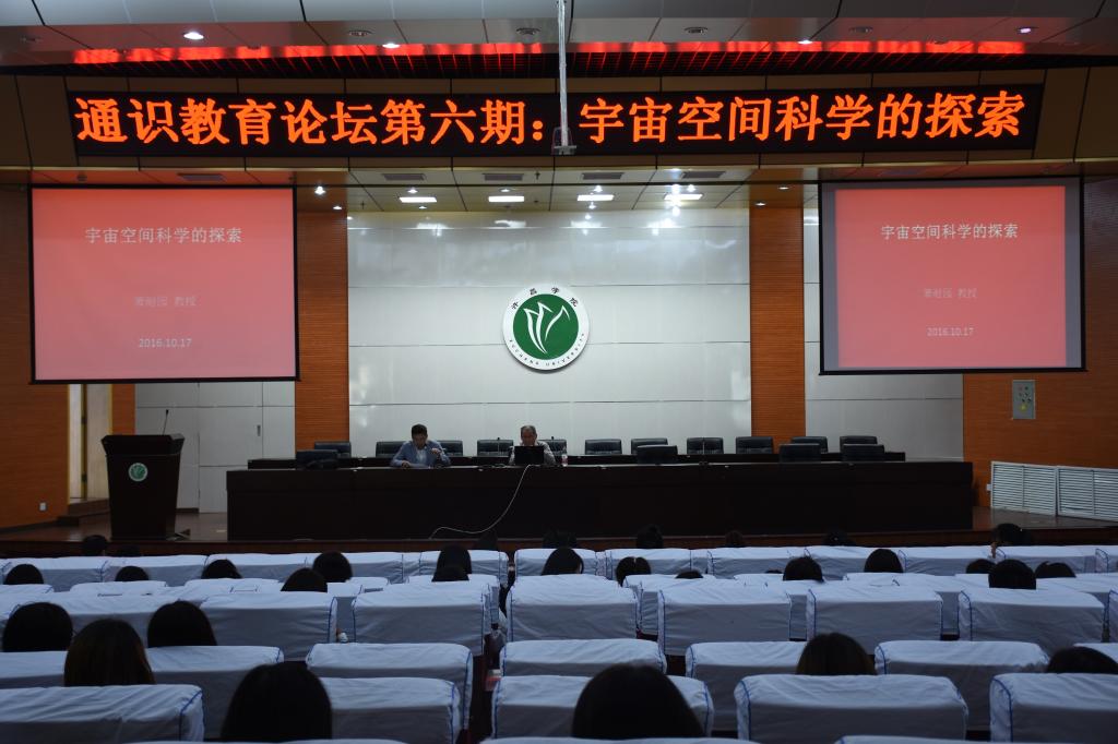 讲座上,萧教授从宇宙星系切入,详细讲解了宇宙中天体及太阳系有关的科学知识,重点介绍了太空探索的历程和成就。人类认识宇宙的过程就是科技发展的过程。人类对于未知的探索,都是建立在科学研究的基础之上的。萧教授结合学生所熟悉的人类迈向太空的事实,进一步研究宇航员进行太空旅行所面对的困难,很自然地将物理学与生命科学联系在一起。让同学们真切的了解到宇宙空间探索的艰辛历程。最后,萧耐园教授呼吁广大学生努力学习科学知识,积极探索宇宙太空,将来为我国航空航天事业的发展贡献出自己的一份力量。