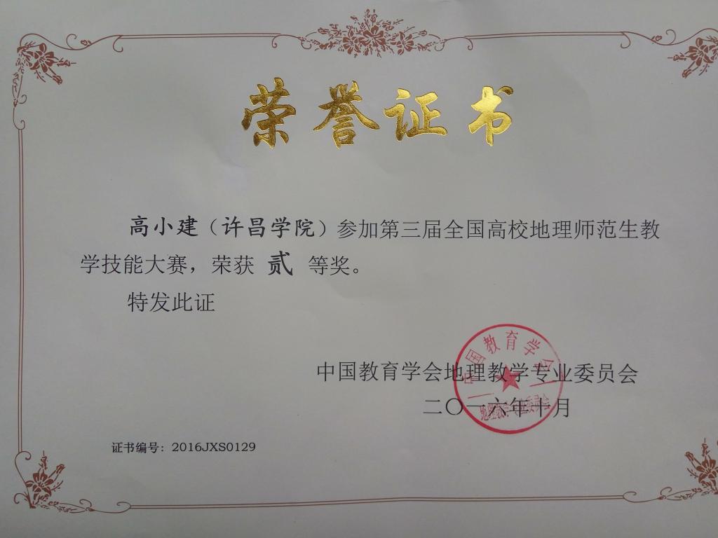 2016年10月12日,第三届全国高校地理师范生“中教启星杯”教学技能比赛在云南师范大学隆重举行。城乡规划与园林学院选派的2名选手在比赛中表现突出,张艳茹同学获得一等奖、高小建同学获得二等奖。