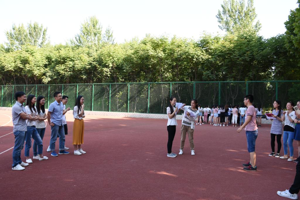 夏日炎炎,依旧阻挡不了同学们的高涨热情,活力青春。活动现场,自由组合,每组七人,累计积分,高者获胜。活动有丢沙包,跳绳,传吸管等,同学们玩的不亦乐乎。特别是心有灵犀―你来比划我来猜的游戏,只见一位同学在看到成语后,就立刻利用手势和表情来表达他的意思,搞笑的动作和夸张的表情让同学们忍俊不禁。你来画画我来猜的游戏更是让同学们脑洞大开,各种画形,开启了猜词同学的大脑风暴。最后,由赵普天老师和陈琛老师为获奖者颁奖。在这里,同学们留下了欢声笑语,带走了难以忘怀的友情,这将成为他们最美好的回忆。