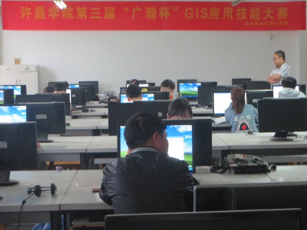 为了激发我校地理信息科学专业学生对GIS技术学习、交流和应用的热情,2016年5月27日下午两点半,在许昌学院综合实验楼四楼401机房举办了许昌学院第三届“广瀚杯”GIS应用技能大赛。此次比赛由城乡规划与园林学院与GIS青年协会承办面向许昌学院的所有学生。
