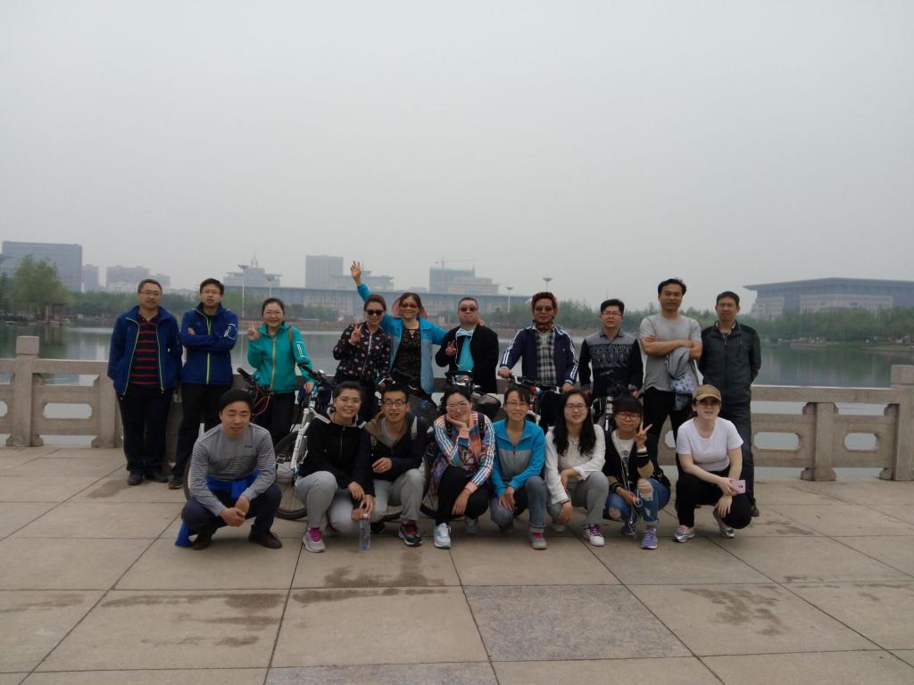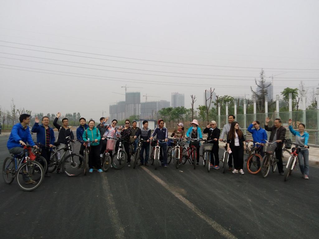 为更好的推动全民健身活动持续健康开展,进一步丰富广大教工的业余文化生活。2016年4月17日,城乡规划与园林学院工会组织全体教职工环许昌市春游骑行。上午九时许,近三十名教职工在家属院门口集合,在党总支书记王中立的带领下,全体教职工从鹿鸣湖、芙蓉湖、北海等地进行春游骑行。