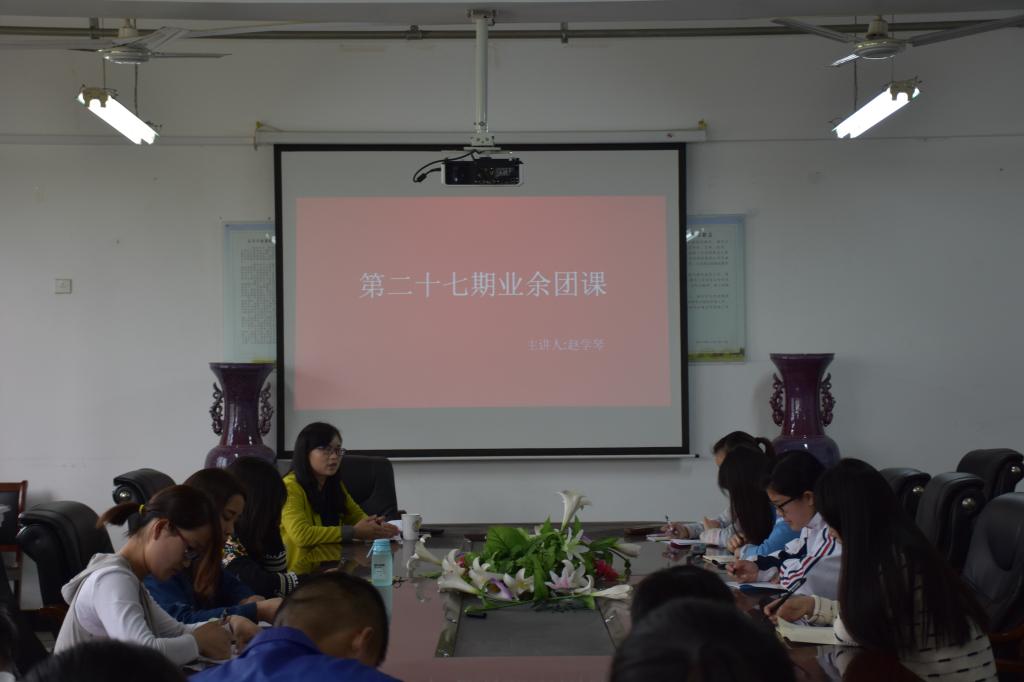 为加强团支部的内部管理,提高优秀团员的思想素质与工作能力。2016年4月8日下午,城乡规划与园林学院在综合楼二楼教室开展第27期团课教育活动,城乡规划与园林学院团总支书记赵学琴担任本次培训的主讲人。