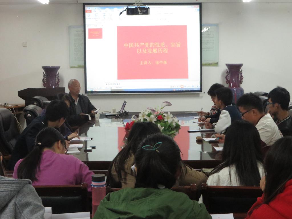 10月29日,徐书记以“中国共产党的性质、宗旨以及发展历程”出发,从当代国家战略——丝绸之路出发,用我国发展的生动事例向我院党课学员讲解了党的性质及全心全意为人民服务的根本宗旨。最后,徐书记向同学们说到,现在我国正处于发展的旺盛时期,大家要好好学习,提高自己的思想道德水平,努力向党员标准靠齐,早日成为一名中国共产党员。